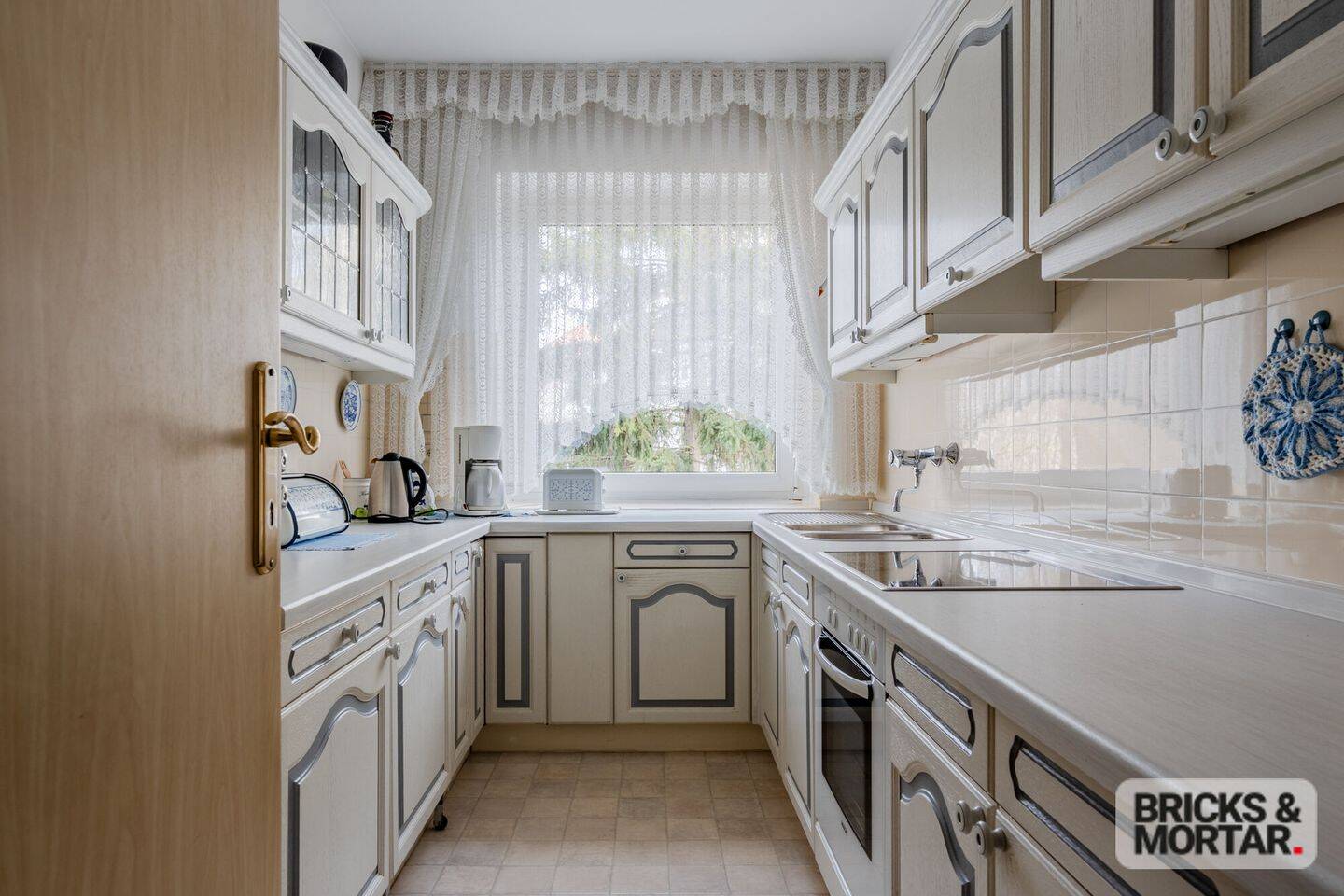 Helle, zeitlose Küche mit Geräten -