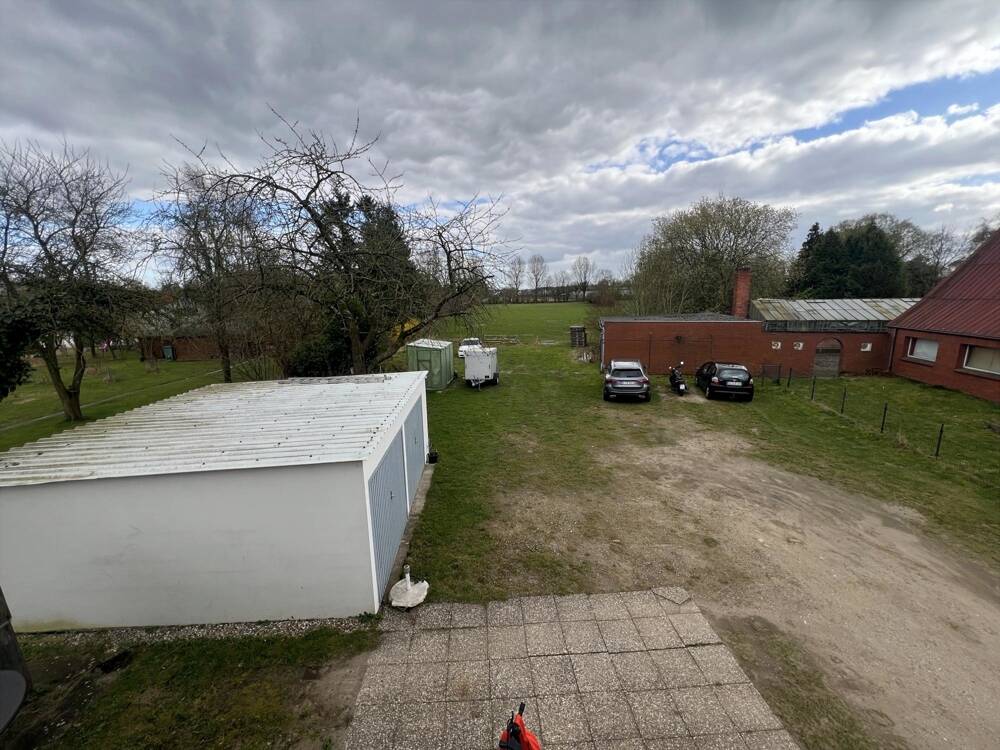 Rückseite Blick zur Straße mi Garage - 8 Zimmer Bauernhaus, Landhaus zum Kaufen in Lübeck