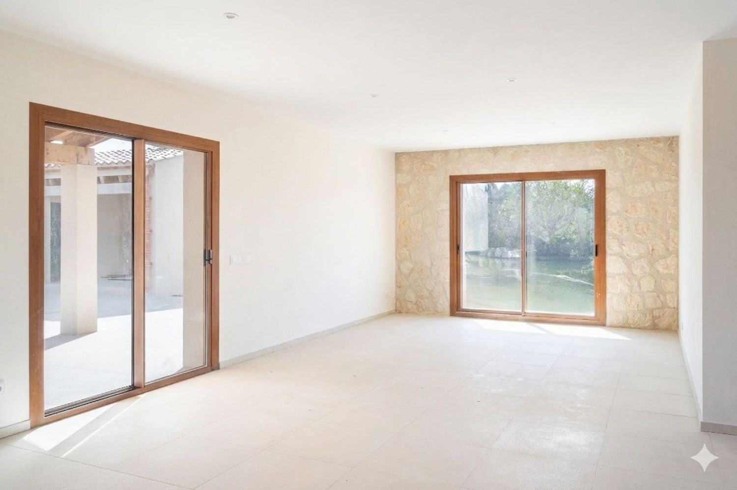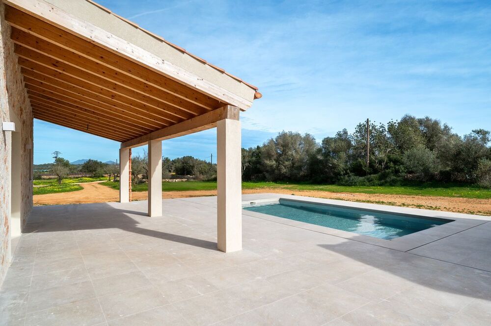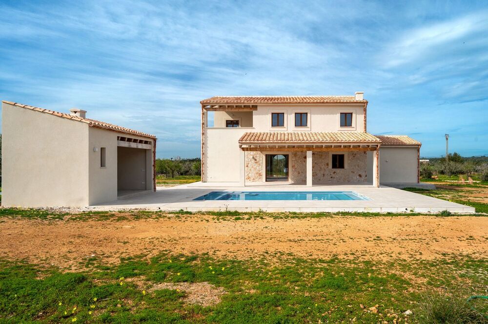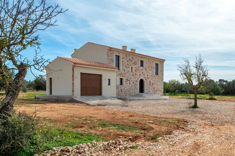 Am Stadtrand von Ses Salines, umgeben von einer eigenen Mandelplantage, steht dieses moderne, brandneue Anwesen.Das Haus mit einer bebauten Fläche von 330 m² erstreckt sich über zwei Etagen auf einem 20.800 m² großen Grundstück und verfügt über einen beheizten Pool, ein Barbecue-Häuschen und eine Garage.Vom 60 m² großen, sehr hellen Wohnzimmer aus genießt man einen freie Sicht auf die Landschaft bis zum Berg samt Kloster San Salvador, während die offene Küche eine gemütliche und funktionale Atmosphäre schafft, die die Bereiche des täglichen Zusammenlebens miteinander verbindet.Das Haus verfügt über vier Schlafzimmer, drei im Obergeschoss und eines im Erdgeschoss, was je nach Bedarf verschiedene Optionen ermöglicht. Jedes Schlafzimmer zeichnet sich durch seine Geräumigkeit und die Qualität seiner Ausstattung aus. Hinzu kommen drei Badezimmer und eine Gästetoilette, die strategisch verteilt sind, um maximalen Komfort zu gewährleisten.Der beheizte Pool, der sich im sonnigsten Teil des Gartens befindet, lädt zum ganzjährigen Baden in absoluter Privatsphäre ein.Das Anwesen verfügt außerdem über Sonnenkollektoren in Kombination mit einem Anschluss an das öffentliche Stromnetz, was einen nachhaltigeren Energieverbrauch ermöglicht, ohne auf Komfort verzichten zu müssen.Die Lage der Finca macht den besonderen Reiz aus. Dabei sind die wunderschönen Sonnenuntergänge dieser Gegend hervorzuheben, die die Landschaft mit goldfarbenem Licht verwandelt und die Schönheit der Mandelbäume, die das Haus umgeben, unterstreicht.Das charmante Dorf Ses Salines ist nur wenige Minuten entfernt und bietet ganzjährig geöffnete Restaurants, Cafés und Geschäfte. Santanyí mit seinem bekannten Markt, seinen traditionellen Geschäften und einem breiten gastronomischen Angebot ist ebenfalls nicht weit entfernt, sodass Sie das ganze Jahr über eine ruhige Umgebung und gleichzeitig eine gute Infrastruktur genießen können.Die schönsten Strände im Süden Mallorcas, darunter Es Trenc, Ses Covetes, Es Carbó und Cala Pi, sind nur eine kurze Fahrt entfernt. Die Gegend ist auch bei Radfahrern sehr beliebt, die hier ruhige und gut ausgebaute Routen vorfinden, während Golfbegeisterte den Vall dOr Golfplatz in unmittelbarer Nähe haben. Der Flughafen und die Stadt Palma sind etwa 35 Minuten entfernt, sodass Sie die Hauptstadt bequem erreichen können, ohne auf die Ruhe der ländlichen Umgebung verzichten zu müssen.Diese moderne Finca im mediterranen Stil vereint Design, Bauqualität und Nachhaltigke