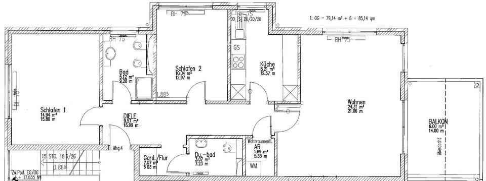 Gesamtgröße:ca. 85,00 m²