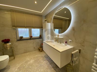 Dieses großzügige möbillierte alleinstehende Einfamilienhaus in Gladbeck (45968) bietet mit 6 Zimmern und 183 m² Wohnfläche viel Raum für Familien, die Komfort und Nähe zum Alltag schätzen. Auf dem 964 m² großen Grundstück wartet ein 2025 komplett neu renovierter Garten – ideal für Spiel, Entspannung und gemeinsame Stunden. Fußbodenheizung und Wärmepumpe sorgen für angenehmes Wohnklima. Eine große Einbauküche lädt zum Kochen und Zusammensein ein. Hochwertige, teils unbenutzte Möbel (2025) sind dabei.