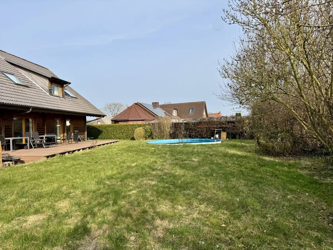 Sie befinden sich hier: Exklusives Holz-Einfamilienhaus mit großzügiger Terrasse, traumhaftem Garten und Pool in bester Lage in Brunsbüttel - 26JY2RFHYC2F | 1A-Immobilienmarkt.de