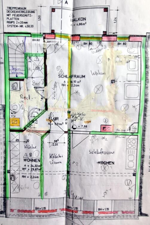 Dreizimmerwohnung mit sep. Küche und Duschbad und 4, 86 Balkon: 65, 88 m²