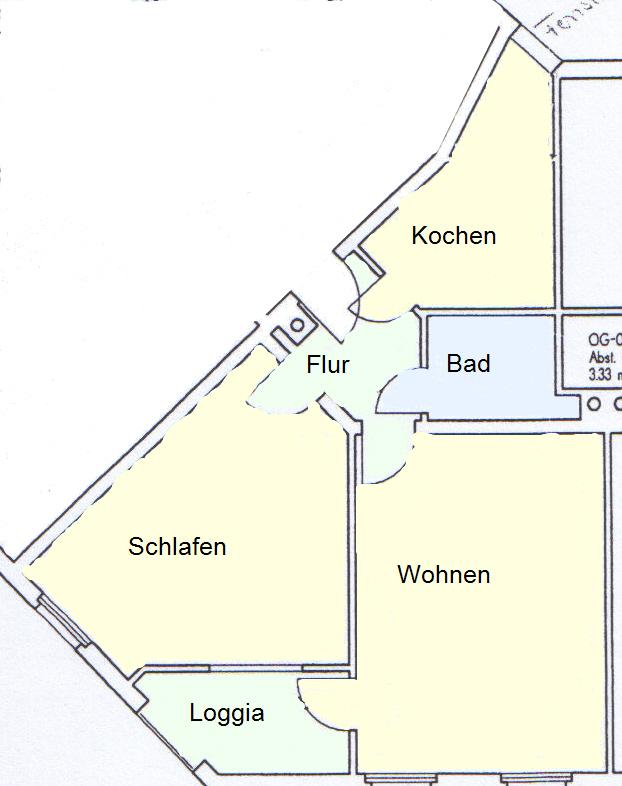 Das Wohn- und Geschäftshaus, in dem sich im EG Gewerbe und in den darüber liegenden Stockwerken 15 Wohneinheiten befinden, wurde 2002 komplett zu einem Energiesparmassivhaus saniert. Die Wohnung verfügt über ein sehr großes Wohn- und Esszimmer mit Zugang zur Loggia und einer separaten Küche. Weiterhin ist ein Schlafzimmer und das Duschbad mit Waschmaschinenanschluss vorhanden. Die großzügigen und hellen Räume bieten ausreichend Platz für ein angenehmes Wohlbefinden. Zur Wohnung gehört zudem noch ein Kellerabstellraum.