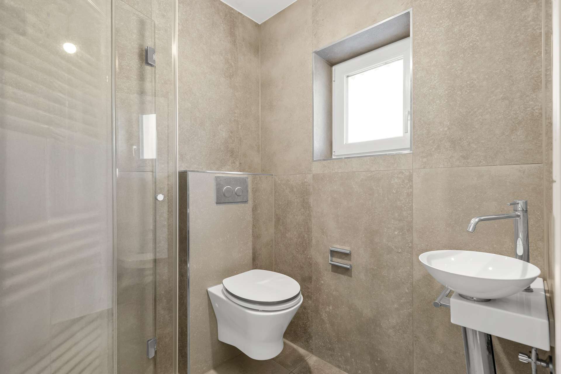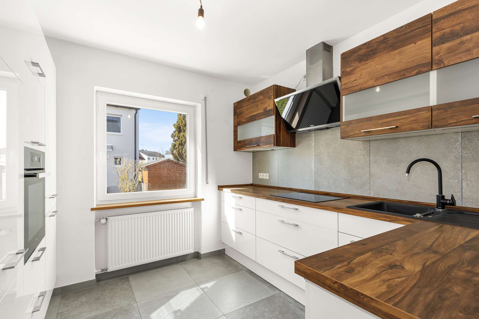 Im Erdgeschoss bildet der gemütliche Wohn- und Essbereich das Herz des Hauses. Von hier aus gelangen Sie auf die teilüberdachte Südterrasse und in den kleinen, hübsch angelegten Garten – perfekt für entspannte Stunden im Grünen. Die separate Küche ist funktional und modern ausgestattet. Ein kompaktes, stilvolles Duschbad ergänzt diese Ebene sinnvoll.