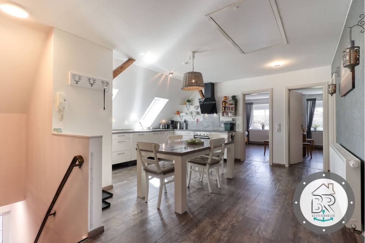 • Offene Küche und Essbereich in der zweiten Wohneinheit im Dachgeschoss -