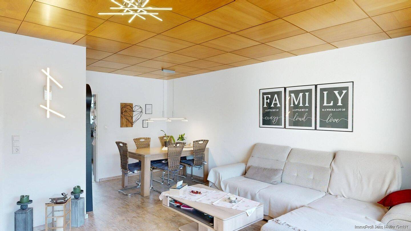 Wohnbereich mit Blick in den Essbereich - Reihenmittelhaus mit Garten und zwei Garagen für Familien in Hamm-Rhynern