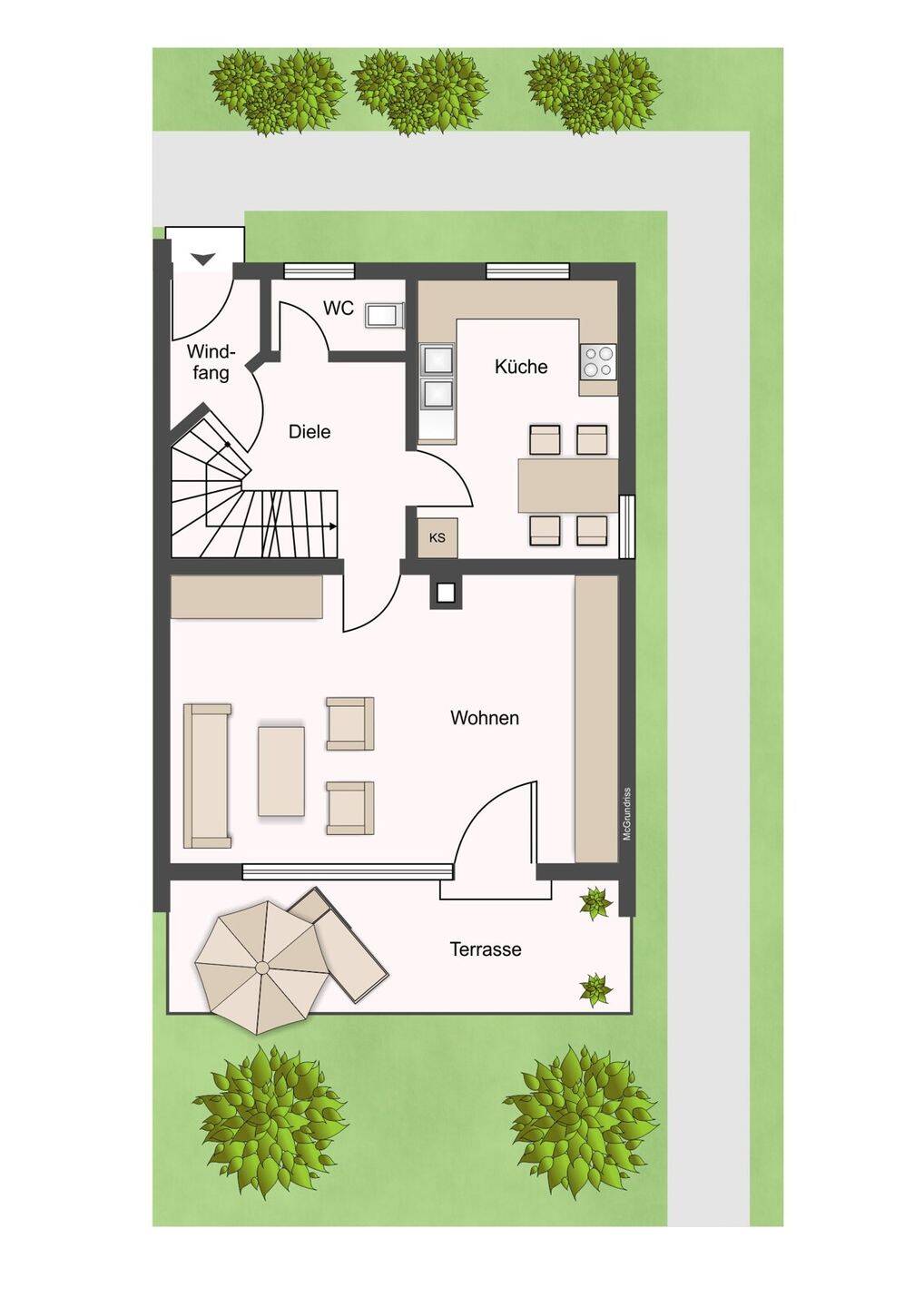 Familienfreundliches Reihenendhaus mit Garage und großzügigem Grundstück