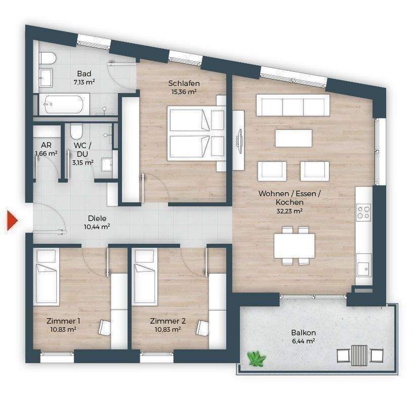 Intelligentes Wohnkonzept, großzügiger Süd-Balkon, direkt am Marienbergpark, KfW 40 EE