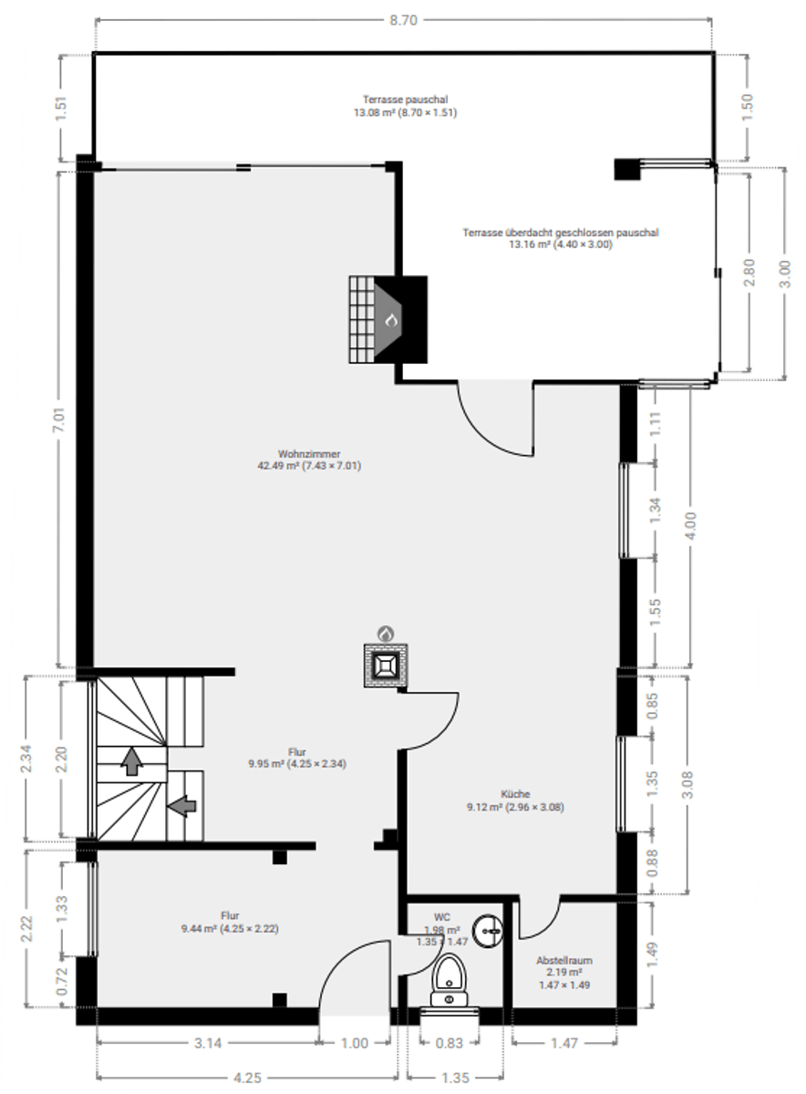 • Wohnzimmer und Kamin -