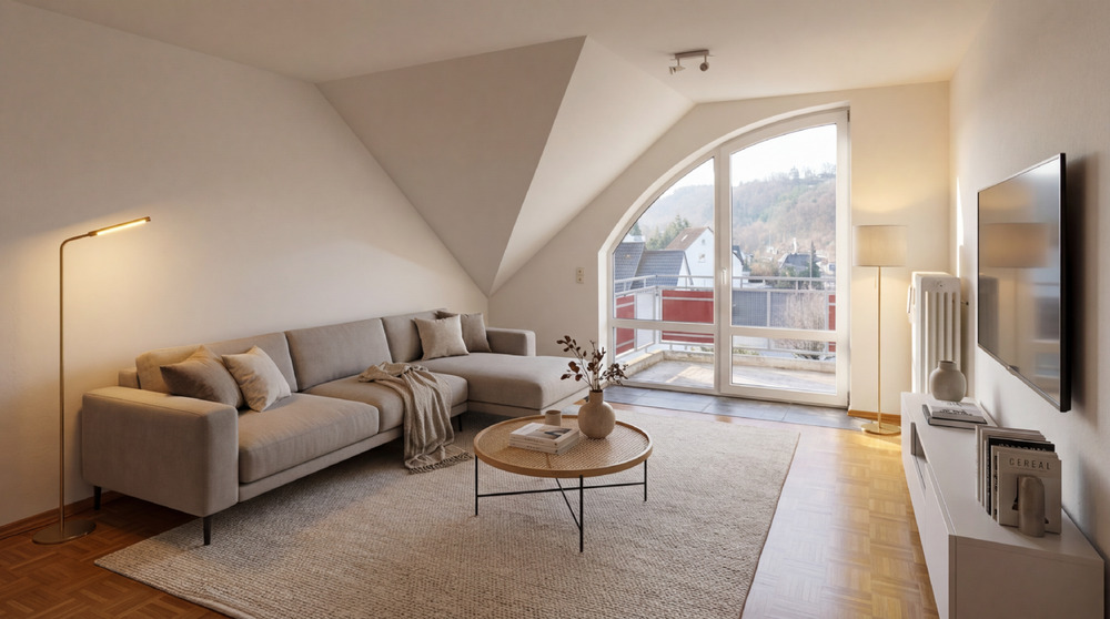 Sie befinden sich hier: Olewig, helle 2 ZKB Dachgeschosswohnung mit großem Balkon und TG Stellplatz zu verkaufen in Trier Tarforst - 261D3YDKY6M6 | 1A-Immobilienmarkt.de