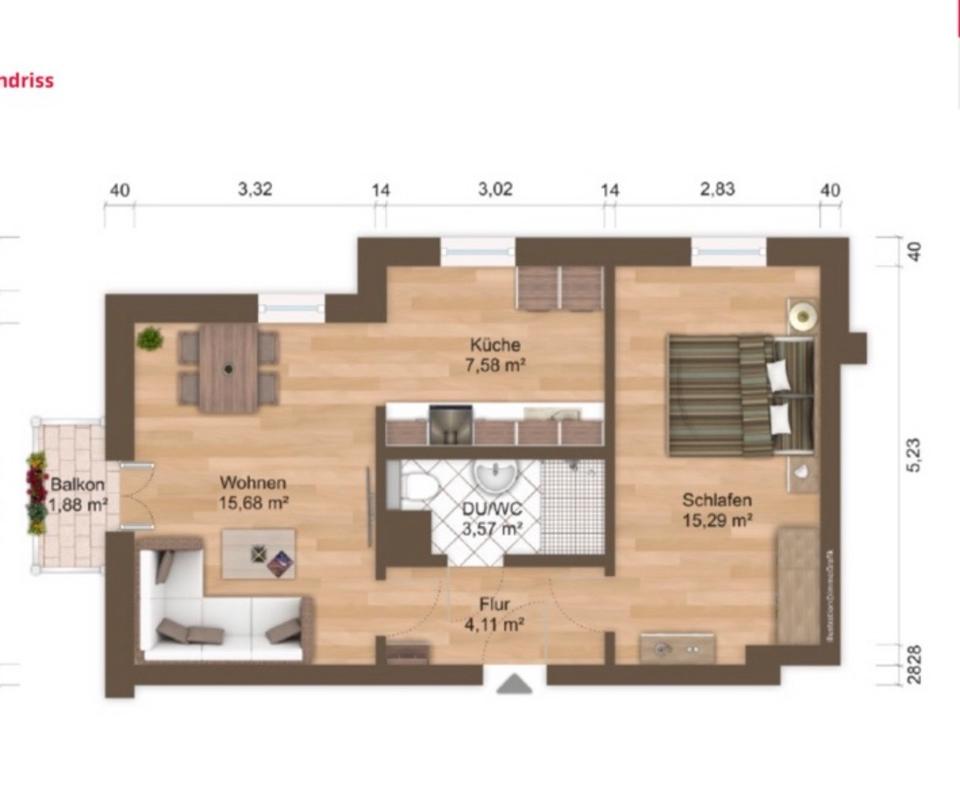 Zimmeranzahl :2 Gesamtgröße :ca. 52,00 m² Stand vom :25.04.2026