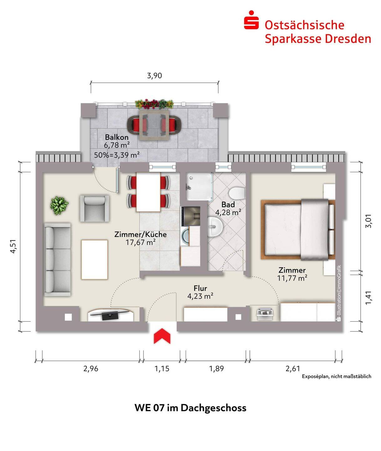 • Grundriss mit Südbalkon -
