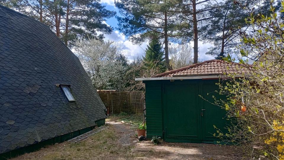 Waldgrundstrück mit Hütte und Garage