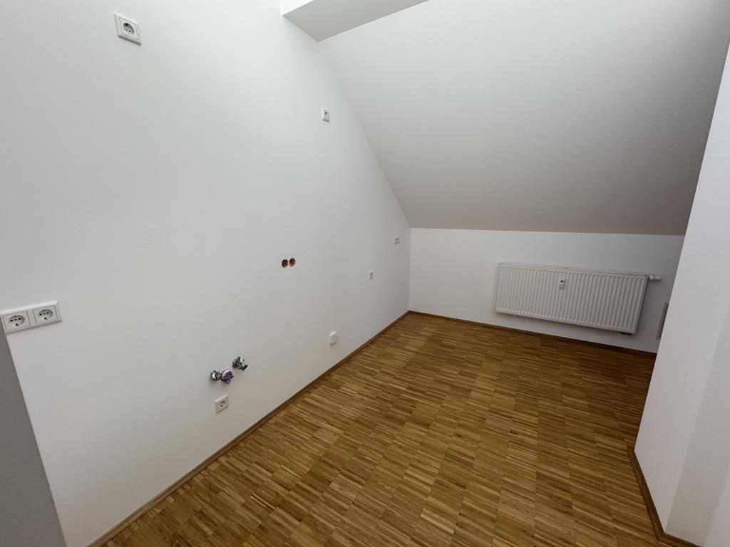 Das Schlafzimmer und die Küche mit separatem Essbereich erreichen Sie bequem vom Wohnzimmer aus. Ein geräumiger Abstellraum, welcher ebenfalls vom Flur aus erreichbar ist, ergänzt dieses Angebot.