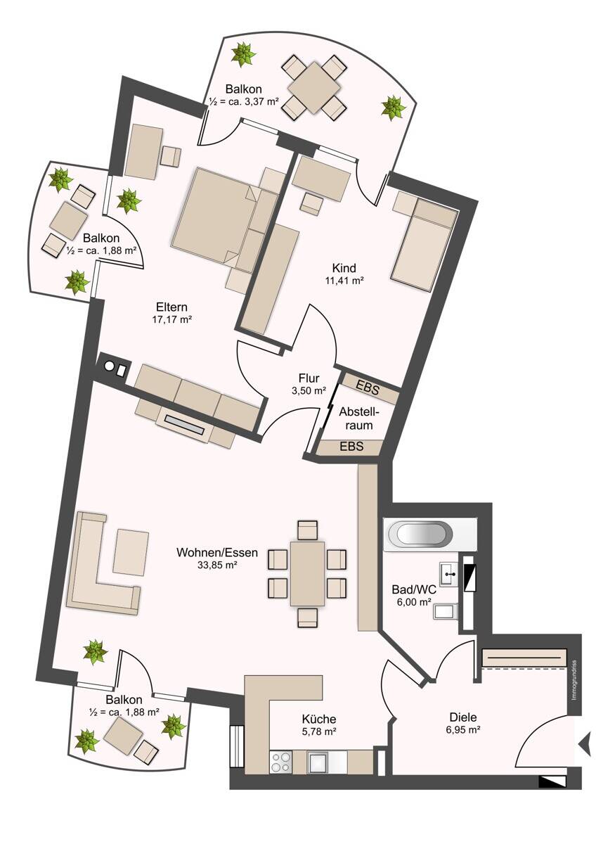 Gesamtgröße:ca. 91,00 m²