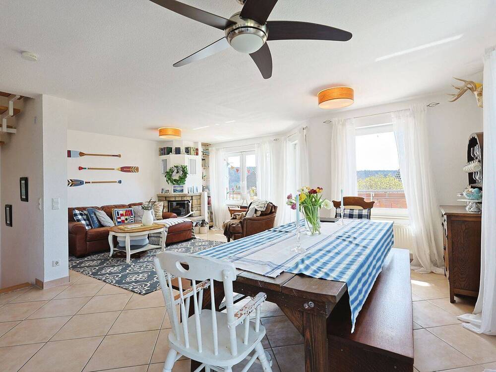 Lichtdurchfluteter Wohn- und Essbereich mit Kamin - Helle Doppelhaushälfte mit Einliegerwohnung und Wohlfühlatmosphäre in Aidlingen-Deufringen