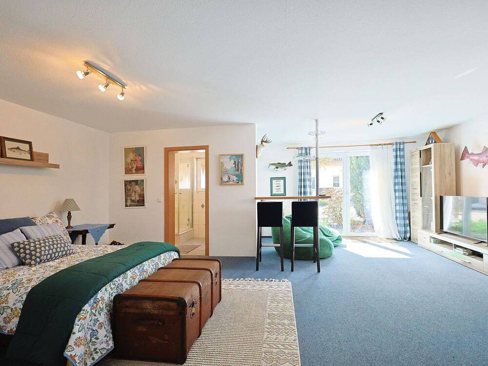 Helles Schlafzimmer im Dachgeschoss mit Balkon -