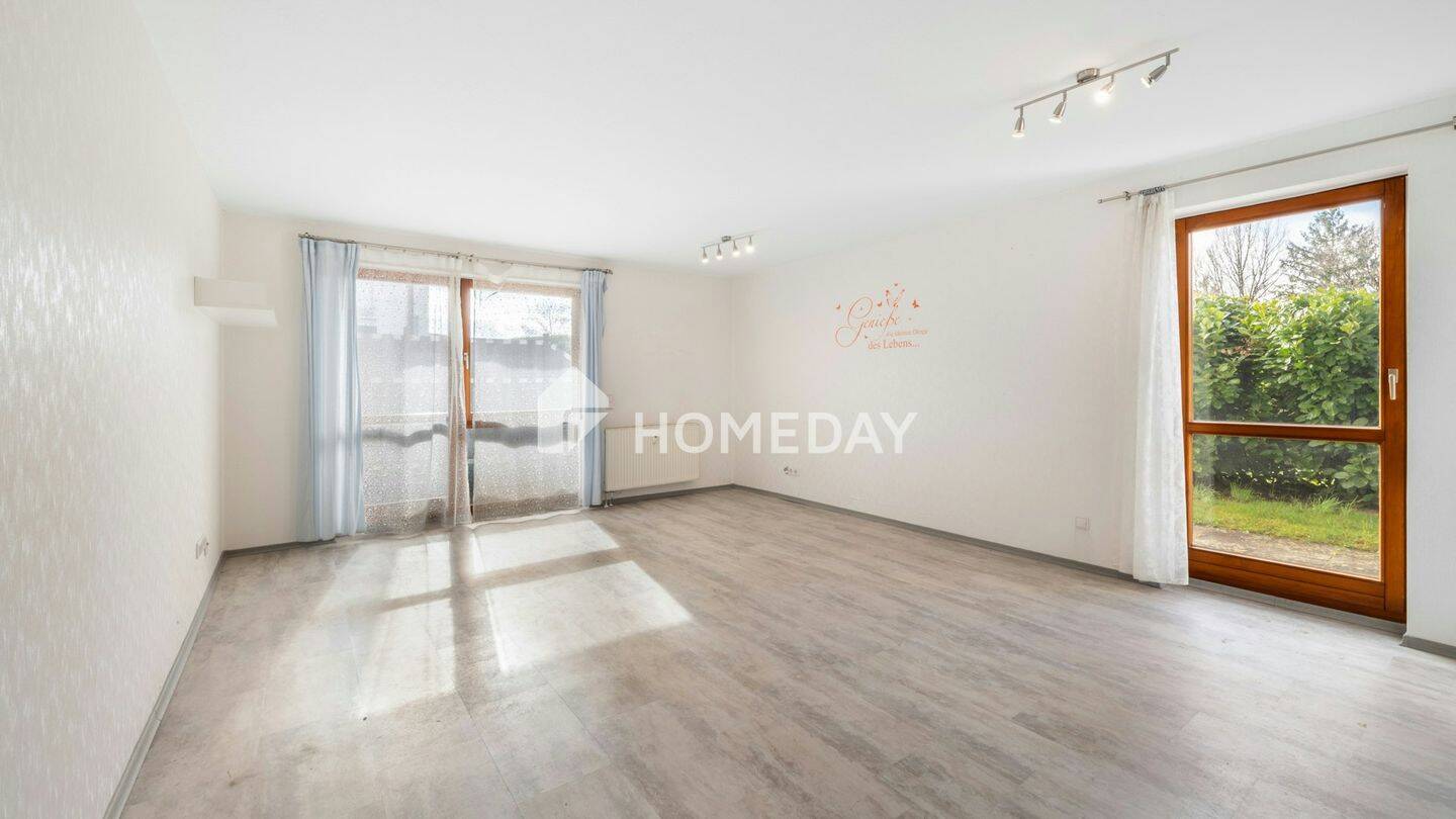 • Wohnzimmer 1 - Wohnen in ruhiger Ortsrandlage: Erdgeschosswohnung mit zwei Terrassen, Tageslichtbad und Stellplatz