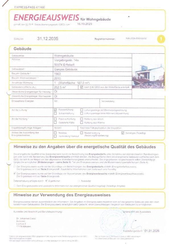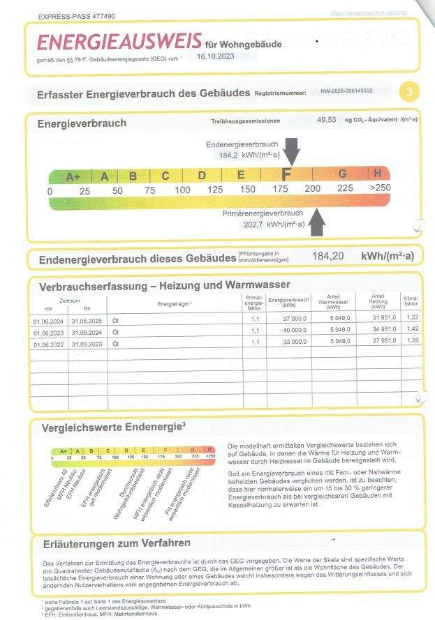 Energieverbrauchkennwert:184,2 kWh/(m²·a) kWh/(m²·a)
