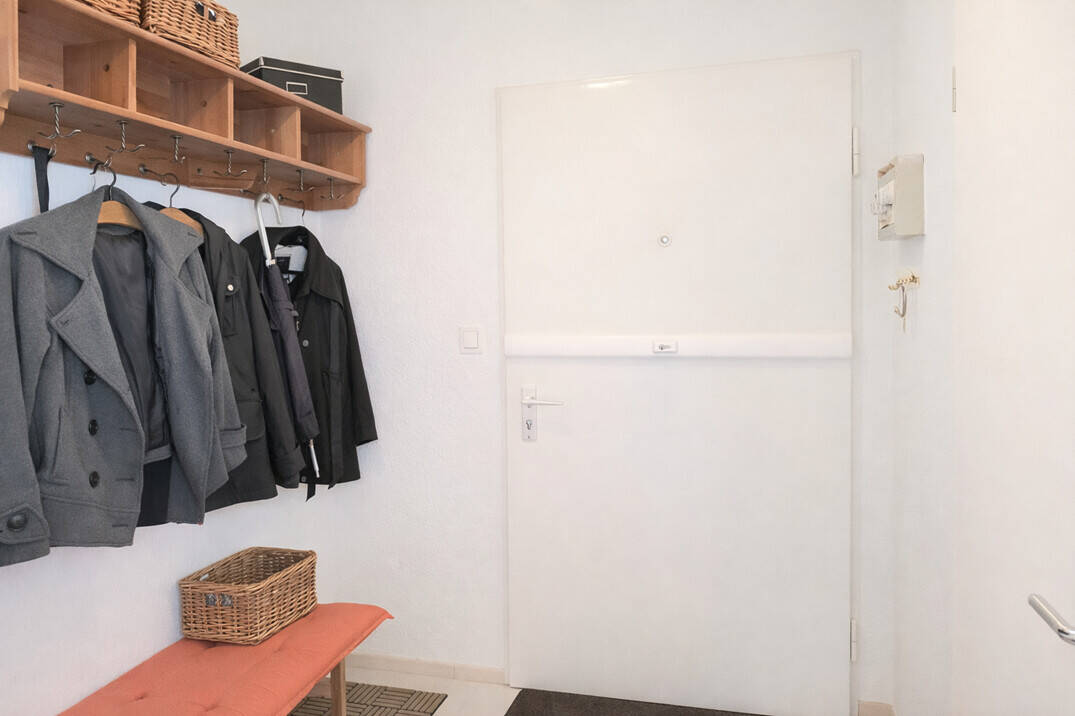 Bereits beim Betreten der Wohnung überzeugt der offene Eingangsbereich, der harmonisch in den Essbereich übergeht. Das anschließende Wohnzimmer bietet ausreichend Platz für eine gemütliche Wohnlandschaft und Zugang zum Südbalkon, der sonnige Stunden im Freien ermöglicht.