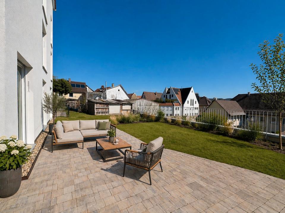 Neubau 3 Zi. Eigentumswohnung - Terrasse und Gartenanteil