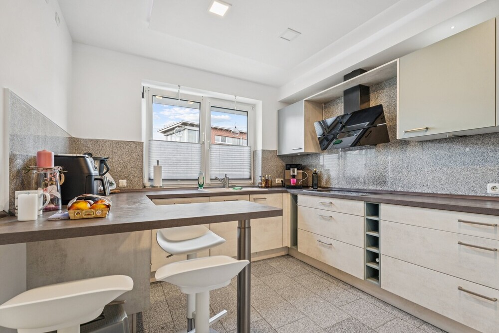 Im Erdgeschoss steht neben dem schicken Gäste-WC, dem einladenden Eingangsbereich, dem hellen Wohn- und Essbereich eine separate Küche zur Verfügung. Die sehr gepflegte Kücheneinrichtung befindet sich im Eigentum der Mieterin - u. U. ist ein Erwerb dieser passgenauen und schönen Küche nach Absprache möglich.