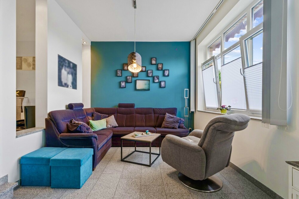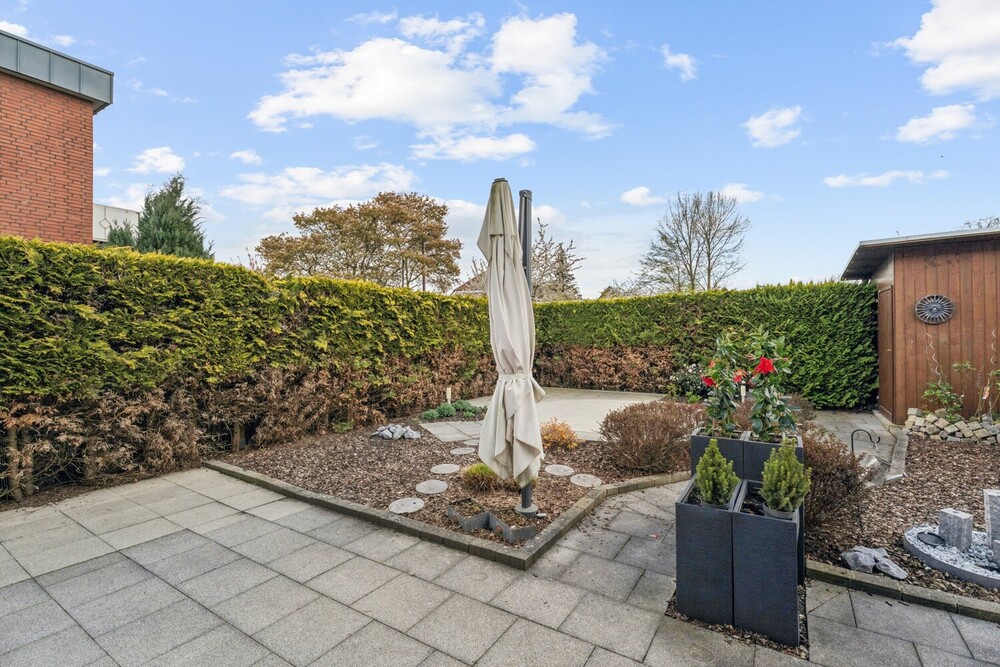 Der Außenbereich punktet mit einem gepflegten Garten, der zahlreiche Optionen für Freizeitaktivitäten, Erholung oder gemeinsames Miteinander im Freien eröffnet.