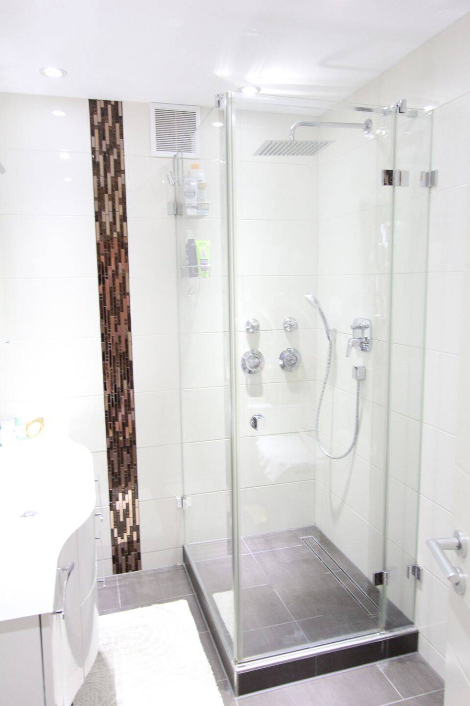 • ...moderne Echtglasdusche -