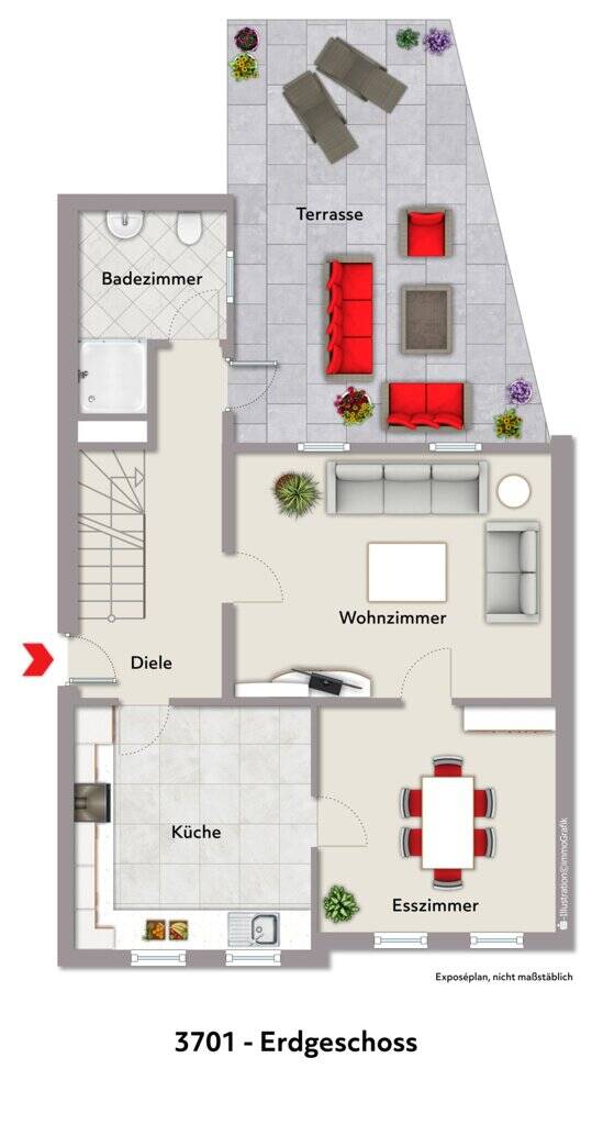 • Grundriss EG visualisiert 3701 -