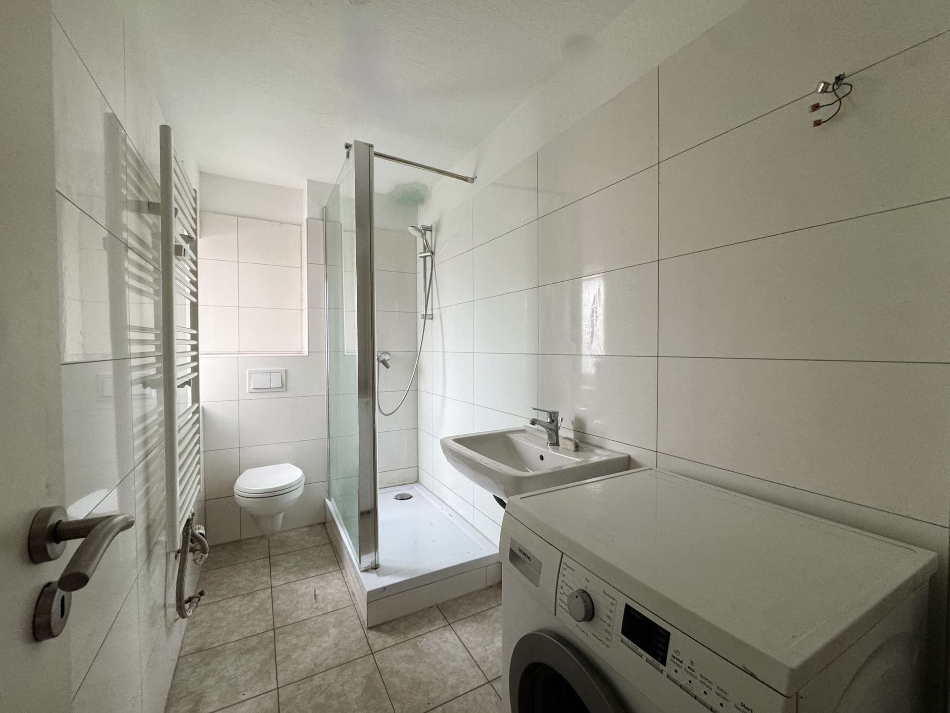 - Dusche - Neuer PVC-Boden in Holzoptik - Wände und Türen in Weiß - 2-fach verglaste Fenster - Moderne Video-Klingelanlage
