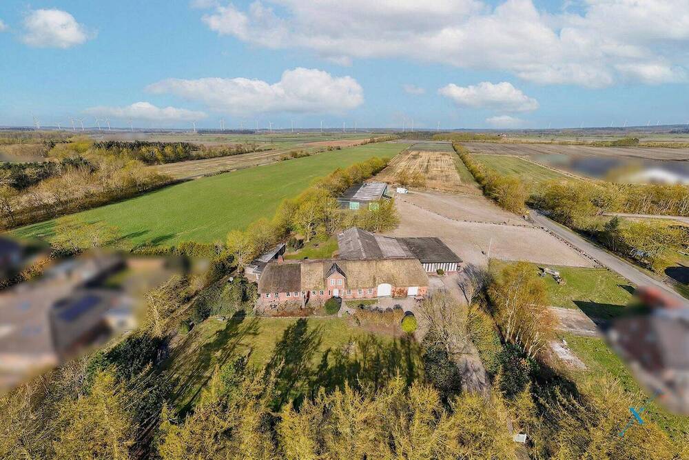 Luftaufnahme - Charmanter Resthof mit Reetdachhaus und großem Grundstück in Klixbüll