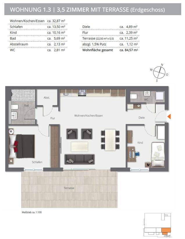 Wohnfläche:ca. 84,60 m²