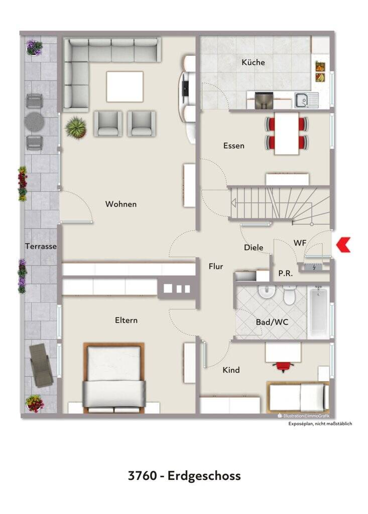 • Grundriss EG visualisiert 3760 -