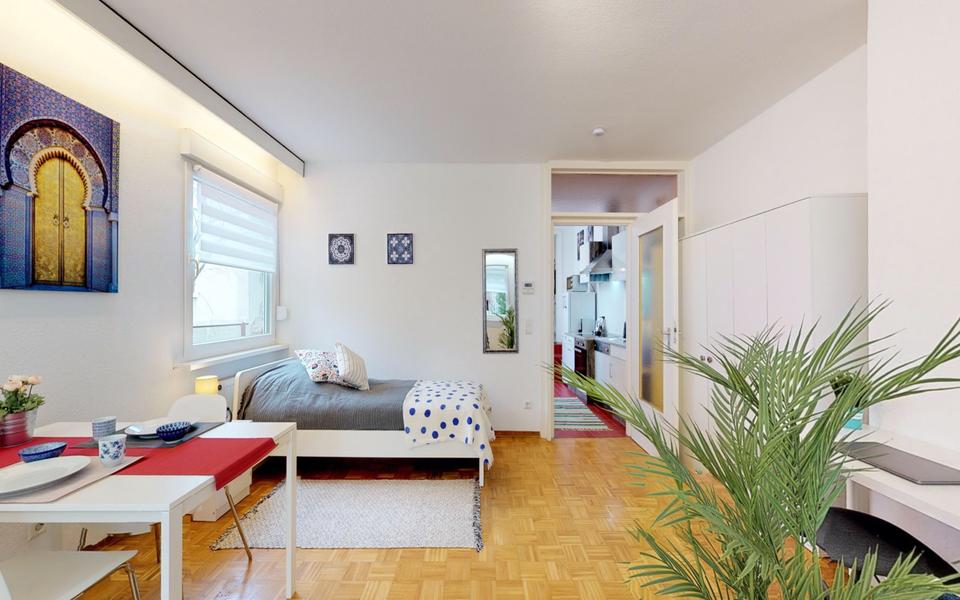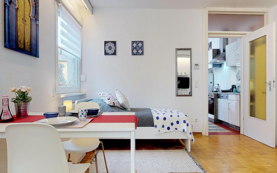 Sie befinden sich hier: 2 Zimmerferienwohnung mit TV, Wlan, Küche, DuscheWc, Terrasse, Waschmaschine, Parkplatz, Garten in Karlsruhe Durlach - 3385261645-199-9197 | 1A-Immobilienmarkt.de