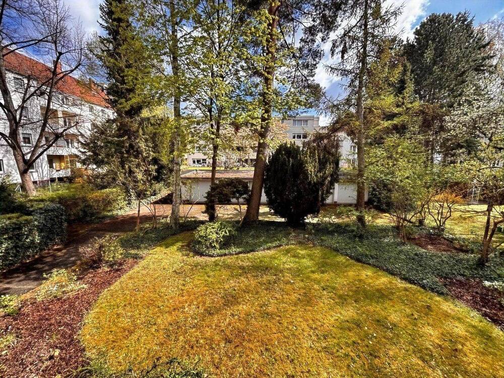 Blick in Garten und auf Garage - 3 Zimmer Etagenwohnung zum Kaufen in Hannover