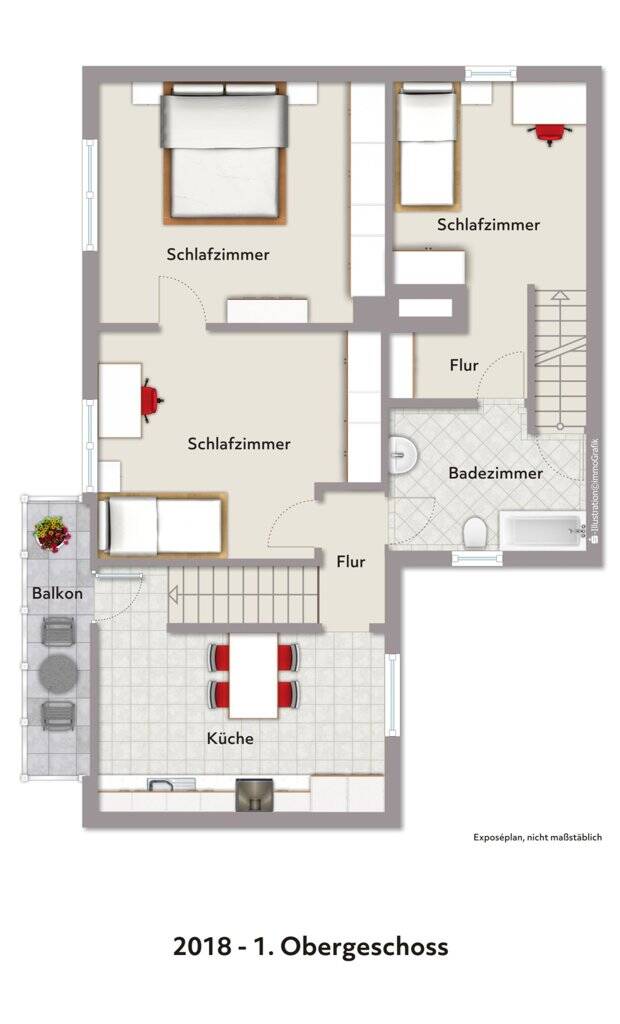 • Grundriss 1. OG visualisiert 2018 -