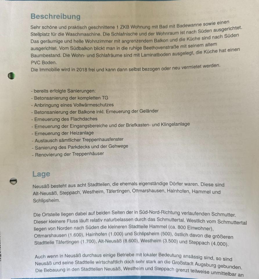 • Foto - 1 Zimmer Etagenwohnung in Neusäß
