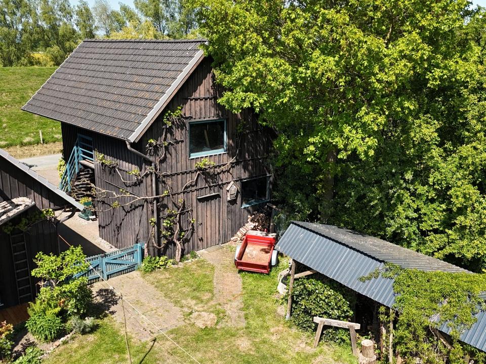 Holzhaus mit großem Nebengebäude am Fluss in fast Alleinlage