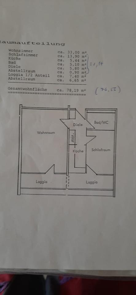 Gesamtgröße:ca. 76,00 m²