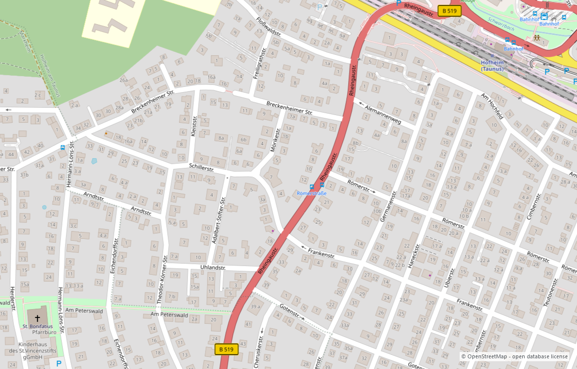 Das angebotene Grundstück liegt im Geltungsbereich des Beb.-plan Nr. 87 der Stadt Hofheim, "Westlich von der Rheingaustraße", umfasst 647m² und sieht eine offene Bauweise und die Bebauung mit Einzelhäuser mit 2 Vollgeschossen sowie einer GRZ 0, 4 / GFZ 0, 7 mit max. 2 Wohneinheiten vor.