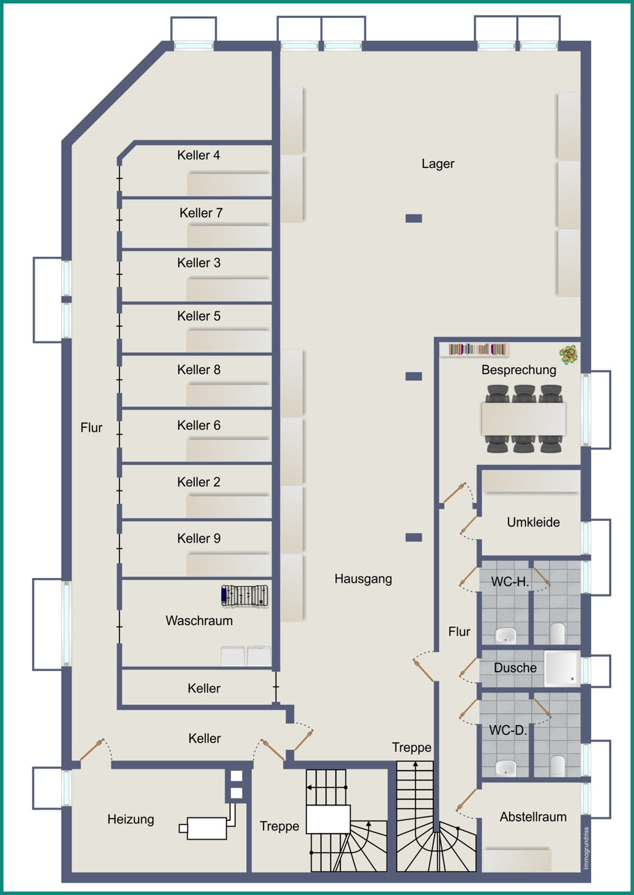 Bei diesem Kaufangebot handelt es sich um eine vermietete Gewerbeeinheit im Erd- und Untergeschoss eines gepflegten Wohn-& Geschäftshauses mit weiteren sechs Wohneinheiten. Die Gewerbeeinheit ist im Erdgeschoss als Tanzschule ausgebaut. Zusätzlich gibt es Sozialräume und Toiletten im Untergeschoss, erreichbar über einen Innentreppe, sowie ein großer, zurzeit nicht genutzter Lagerraum, der bei Bedarf zusätzlich angemietet werden könnte.