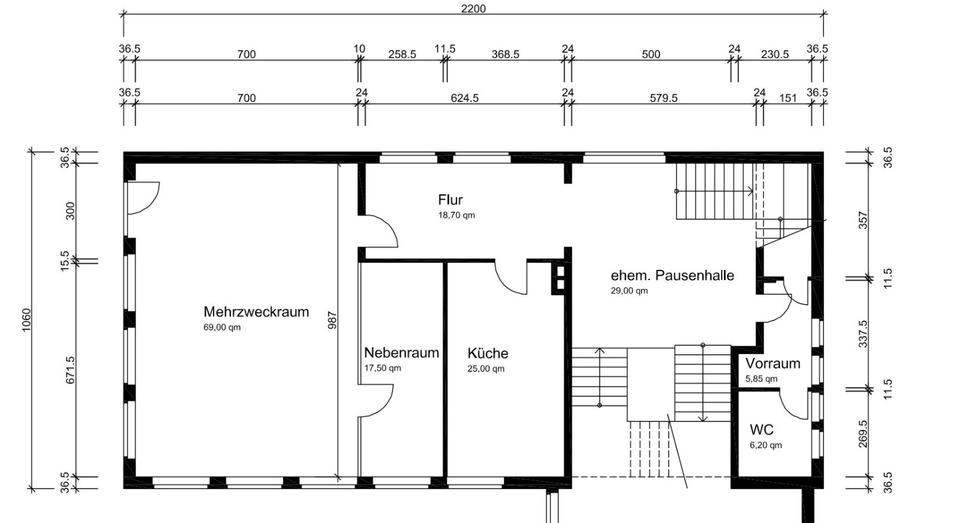 Zwei Etagen in eh. Schule, Rohbauqualität