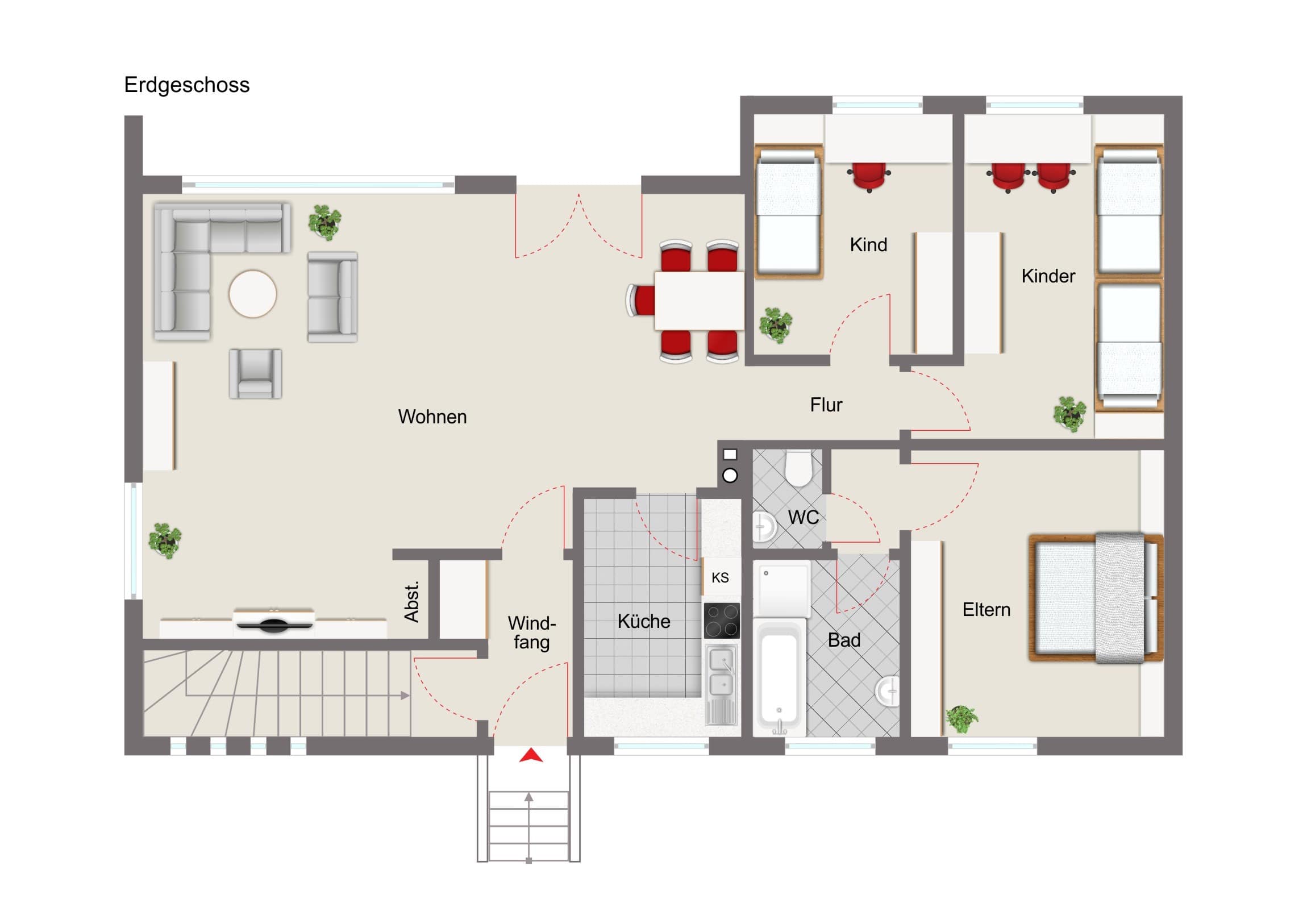 Im Kellerbereich steht Ihnen ein weiterer Raum zur Verfügung, der wohnwirtschaftlich (z. B. als Büro) genutzt werden kann.