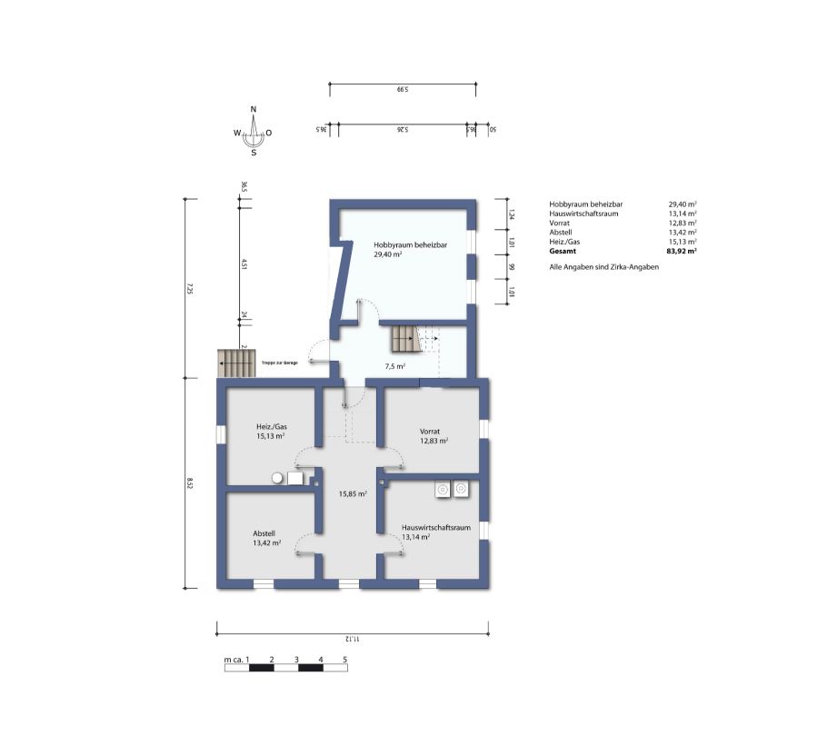 Erdgeschoss (ca. 186 m²): Zentrum: Großzügige Diele (ca. 19 m²) und ein lichtdurchflutetes Wohnzimmer (ca. 33 m²). Wellness & Licht: Direkter Zugang zum ca. 37, 6 m² großen Wintergarten, in dem sich die hauseigene Sauna befindet - Ihr privater Rückzugsort mit Blick in den Garten. Kochen & Essen: Gemütliche Wohnküche im Landhausstil (ca. 13, 6 m²). Privatbereich: Elternschlafzimmer (ca. 14, 2 m²) mit praktischem, begehbarem Kleiderschrank sowie ein weiteres Zimmer (ca. 16 m²), ideal als Kinderzimmer oder Büro. Sanitär: Modernes Badezimmer und separates Gäste-WC. Dachgeschoss (ca. 106 m²) - Ideal als separate Einheit / Airbnb: Highlights: Ein komplett ausgebautes Studio (ca. 28 m²) mit Zugang zur eigenen Loggia (ca. 12 m²). Flexibilität: Ein weiteres Büro oder Gästezimmer, zwei zusätzliche kleine Schlafzimmer sowie ein Abstellraum. Autarkie: Eine zweite voll ausgestattete Küche und ein eigenes Badezimmer machen diese Etage unabhängig. Dank des Glasfaseranschlusses eignet sich dieser Bereich hervorragend als professionelles, ruhiges Büro oder exklusive Gästewohnung. Vollkeller & Nebenflächen (ca. 84 m² Nutzfläche): Stauraum & Freizeit: Vielseitig nutzbarer Vollkeller mit beheizbaren Hobbyräumen. Komfort: Direkter Zugang vom Keller in die Garage (inkl. Werkstattbereich und WC), was kurze Wege bei jedem Wetter garantiert.