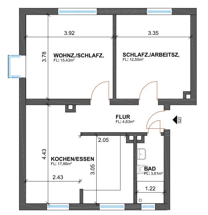 Zimmeranzahl :2 Gesamtgröße :ca. 55,00 m² Stand vom :25.04.2026