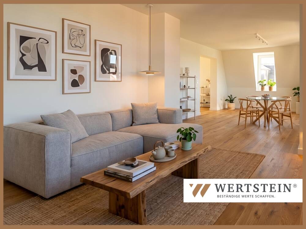 • Titelbild - Exklusive Dachgeschosswohnung, 3 Zimmer, 2 Bäder, Echtholzparkett, PKW-Stellplatz und Garten