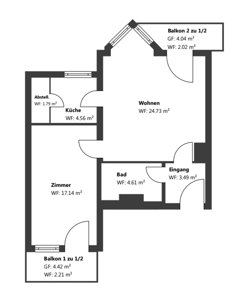 Wohnfläche:ca. 60,80 m²