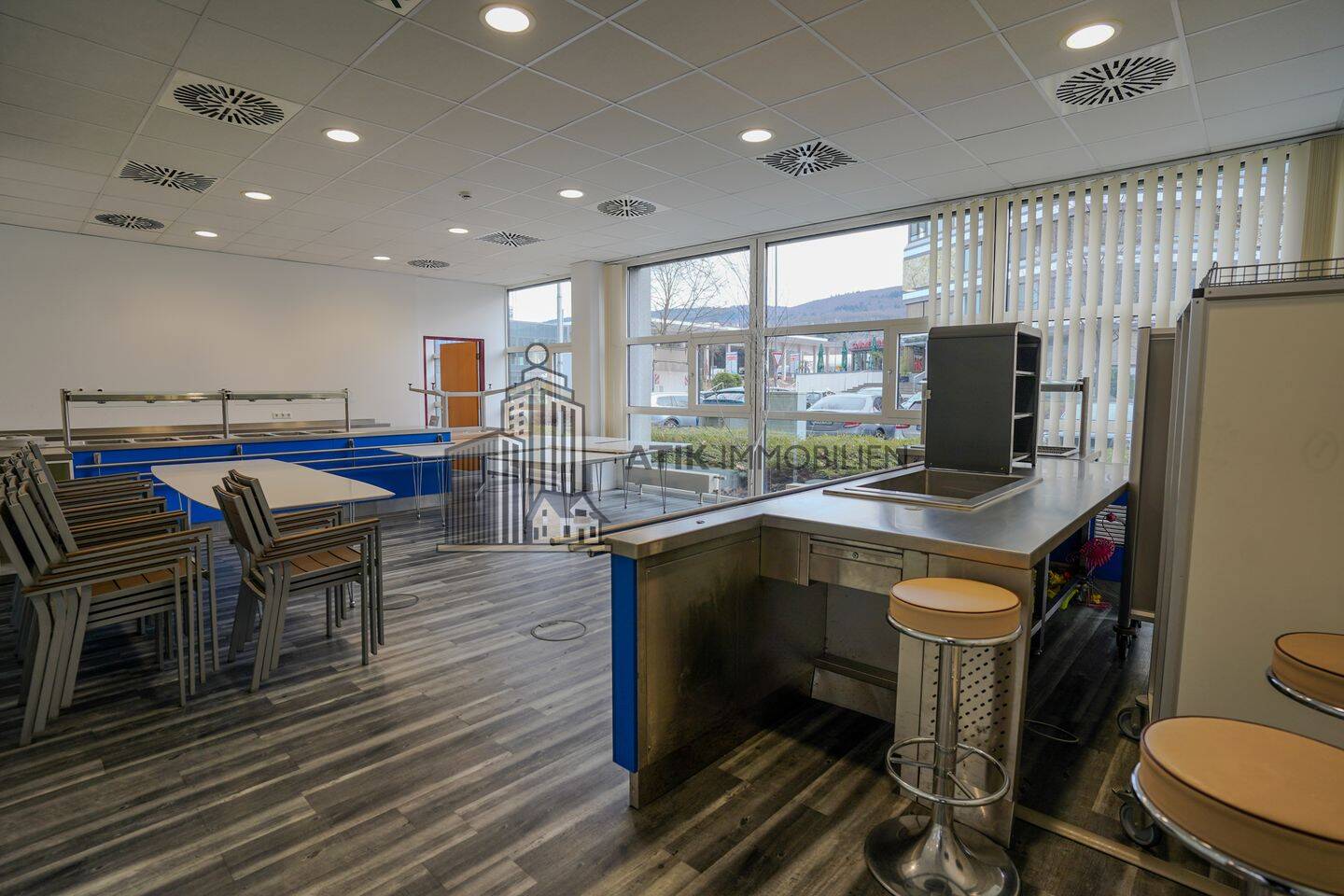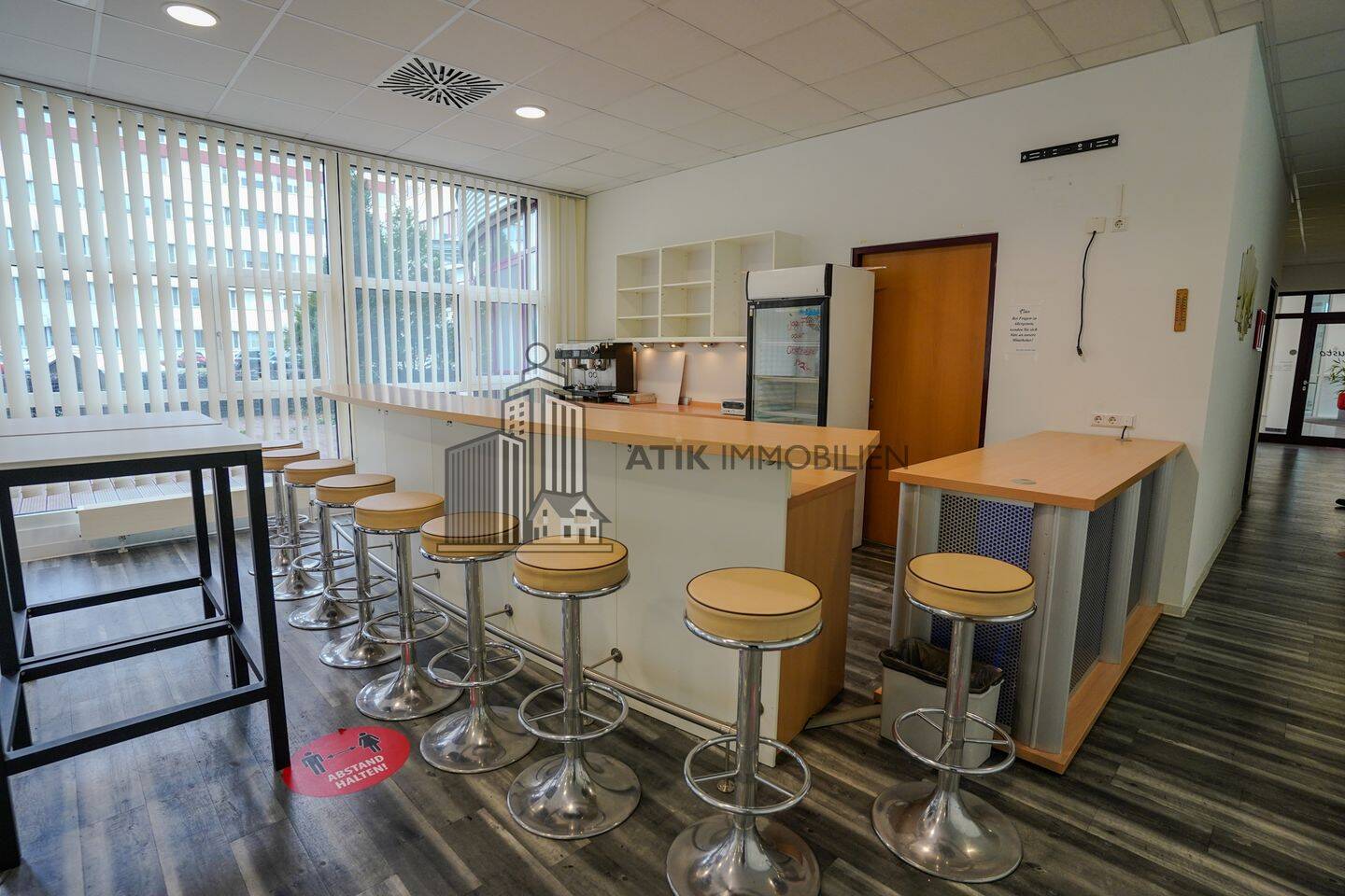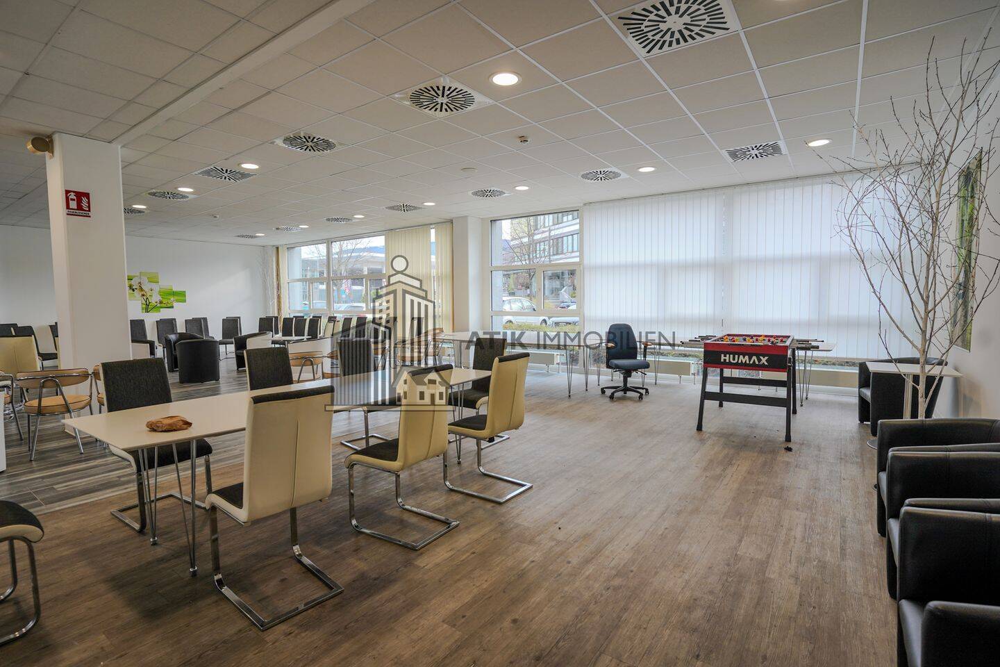 Im Erdgeschoss des Gebäudes erwartet Sie eine großzügige Gewerbefläche von ca. 427 m², die früher als Kantine genutzt wurde. Diese attraktive Fläche bietet eine ideale Grundlage für eine Vielzahl an Nutzungsmöglichkeiten und kann flexibel an die individuellen Bedürfnisse Ihres Unternehmens angepasst werden. Ob als Büroflächen, Showroom oder Gastronomiebereich - die vorhandene Ausstattung lässt sich nach Ihren Vorstellungen umgestalten.