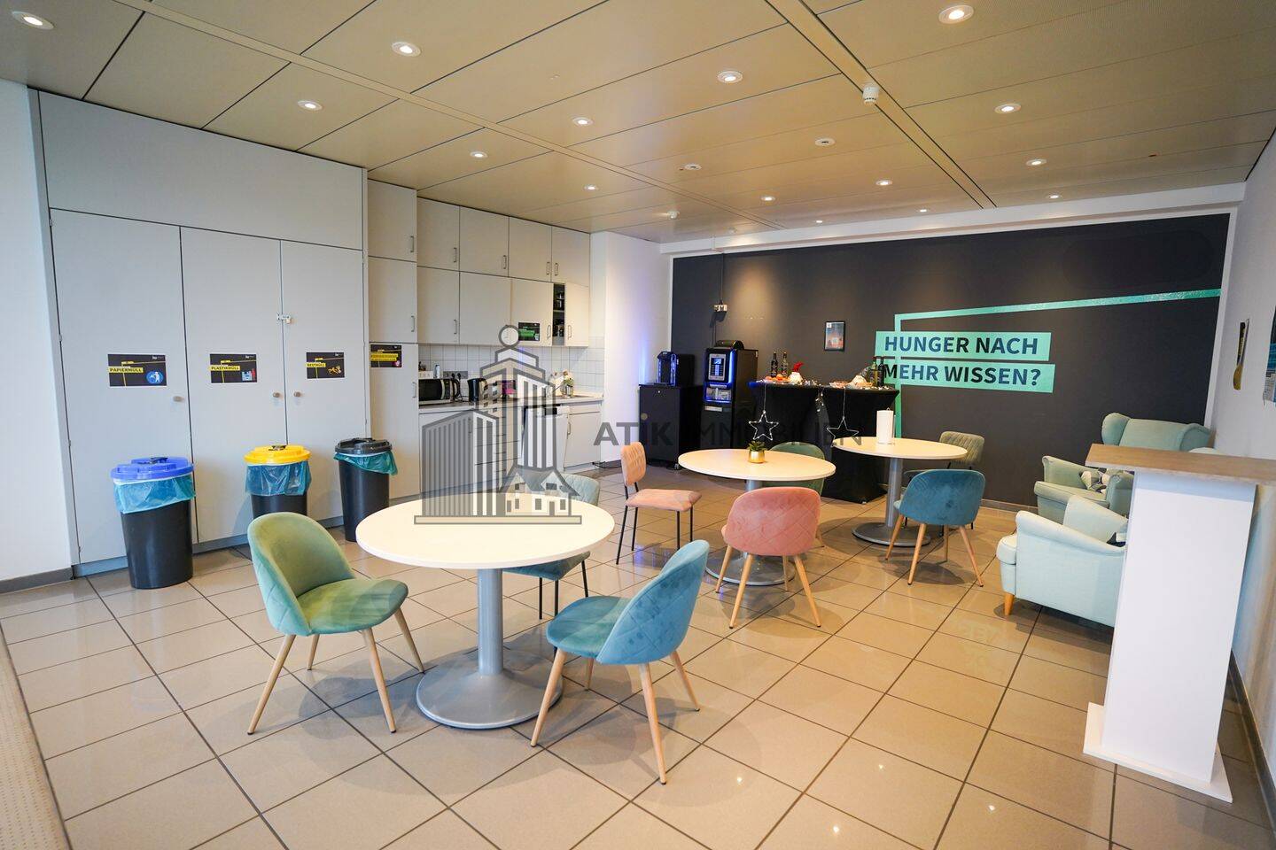 (Im Erdgeschoss steht den Nutzern ein zentraler Concierge-Service zur Verfügung, der für zusätzlichen Komfort sorgt. Für Unternehmen, die weitere Räumlichkeiten benötigen, können eine ca. 40 m² große Kantinenfläche sowie ein Archivraum von ca. 420 m² hinzugebucht werden. Darüber hinaus besteht die Möglichkeit, einen Konferenzraum sowie eine Cafeteria, die vom Vormieter übernommen werden kann zu nutzen. )